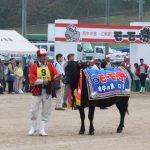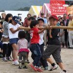 - 牛と子どもの綱引きに臨むひらしげもんた号