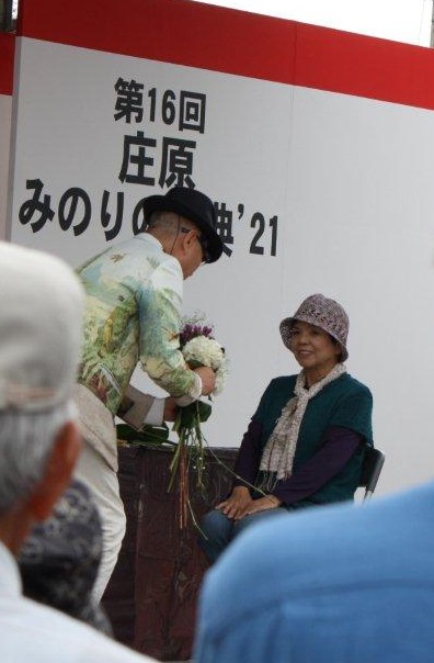 - ブーケパフォーマンスを披露した庄原市ふるさと大使の石原和幸さん